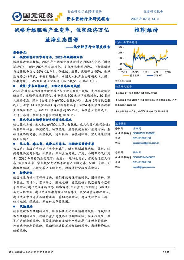 【18663】【国元证券】低空经济行业深度报告:战略升维驱动产业变革,低空经济万亿蓝海生态图谱 22小时前 7月 1 预览结束,本文件为PDF文档,一共31页,请购买后,下载查看 资源下载下载价格59 H币VIP免费升级VIP立即购买下载或充值问题请将订单号发送到:2907878669@qq.com ,我们会在24小时内为您处理 金融分析