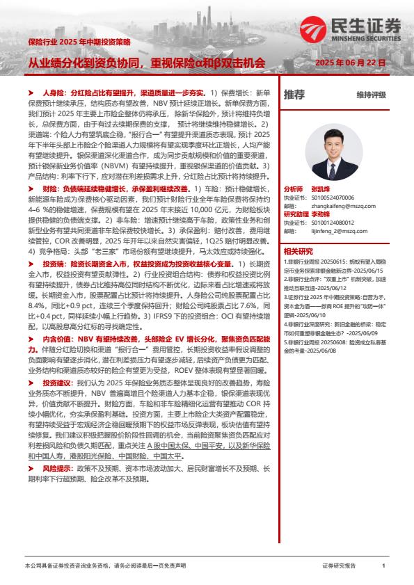 【18518】【民生证券】保险行业2025年中期投资策略:从业绩分化到资负协同,重视保险α和β双击机会 20小时前 7月 1 预览结束,本文件为PDF文档,一共36页,请购买后,下载查看 资源下载下载价格59 H币VIP免费升级VIP立即购买下载或充值问题请将订单号发送到:2907878669@qq.com ,我们会在24小时内为您处理 银行金融