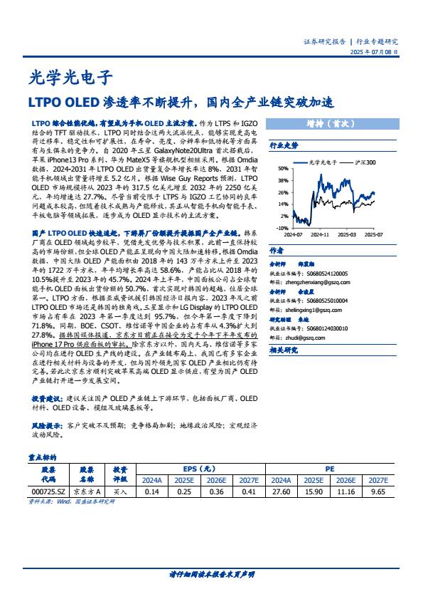 【18721】【国盛证券】光学光电子行业专题研究:LTPO+OLED渗透率不断提升,国内全产业链突破加速 1天前 7月 1 预览结束,本文件为PDF文档,一共18页,请购买后,下载查看 资源下载下载价格59 H币VIP免费升级VIP立即购买下载或充值问题请将订单号发送到:2907878669@qq.com ,我们会在24小时内为您处理 科技电子