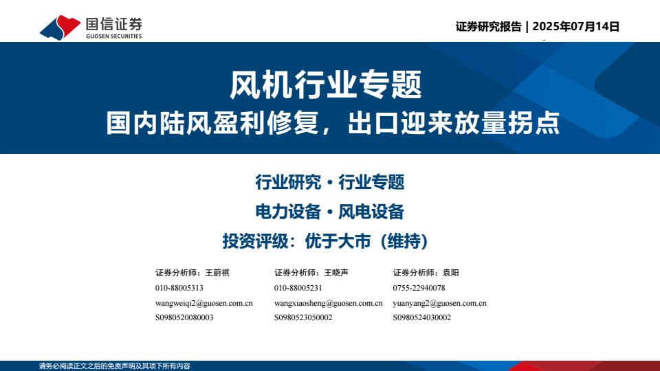 【18679】【国信证券】风机行业专题:国内陆风盈利修复,出口迎来放量拐点 2天前 7月 2 预览结束,本文件为PDF文档,一共38页,请购买后,下载查看 资源下载下载价格59 H币VIP免费升级VIP立即购买下载或充值问题请将订单号发送到:2907878669@qq.com ,我们会在24小时内为您处理 金融分析