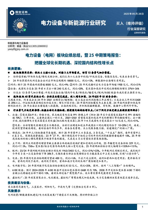 【18765】【国金证券】电力设备(电网)板块业绩总结,暨25中期策略报告:把握全球化长期机遇、深挖国内结构性增长点 1天前 7月 1 预览结束,本文件为PDF文档,一共46页,请购买后,下载查看 资源下载下载价格59 H币VIP免费升级VIP立即购买下载或充值问题请将订单号发送到:2907878669@qq.com ,我们会在24小时内为您处理 能源化工
