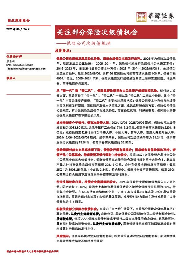 【18554】【华源证券】保险公司次级债梳理:关注部分保险次级债机会 16小时前 7月 1 预览结束,本文件为PDF文档,一共29页,请购买后,下载查看 资源下载下载价格59 H币VIP免费升级VIP立即购买下载或充值问题请将订单号发送到:2907878669@qq.com ,我们会在24小时内为您处理 银行金融