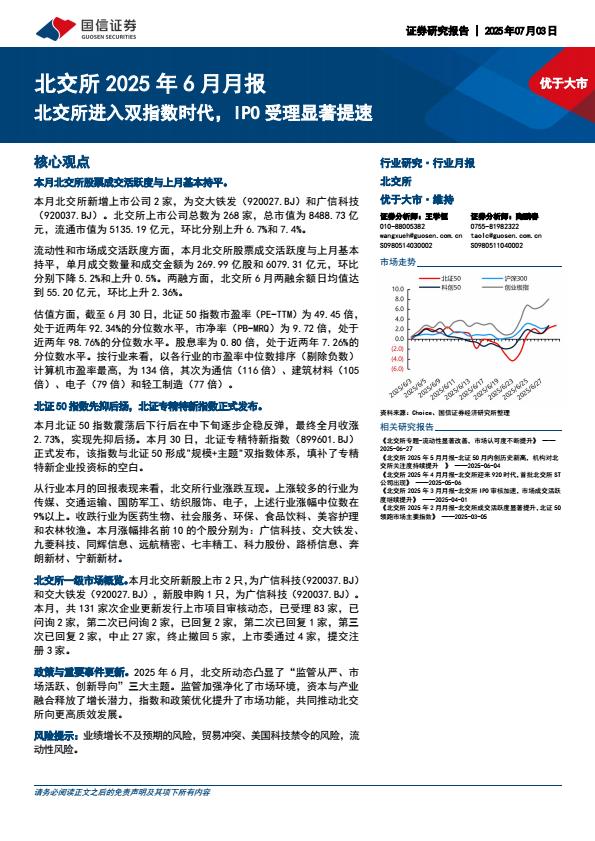 【18685】【国信证券】北交所2025年6月月报:IPO受理显著提速 1天前 7月 1 预览结束,本文件为PDF文档,一共32页,请购买后,下载查看 资源下载下载价格59 H币VIP免费升级VIP立即购买下载或充值问题请将订单号发送到:2907878669@qq.com ,我们会在24小时内为您处理 金融分析