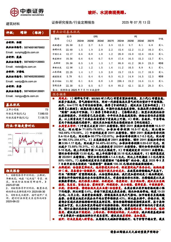 【18354】【中泰证券】建筑材料行业:持续推荐中材科技、三棵树、华新水泥;25H1业绩预告密集出炉,玻纤、水泥表现亮眼 12小时前 7月 1 预览结束,本文件为PDF文档,一共19页,请购买后,下载查看 资源下载下载价格59 H币VIP免费升级VIP立即购买下载或充值问题请将订单号发送到:2907878669@qq.com ,我们会在24小时内为您处理 地产开发