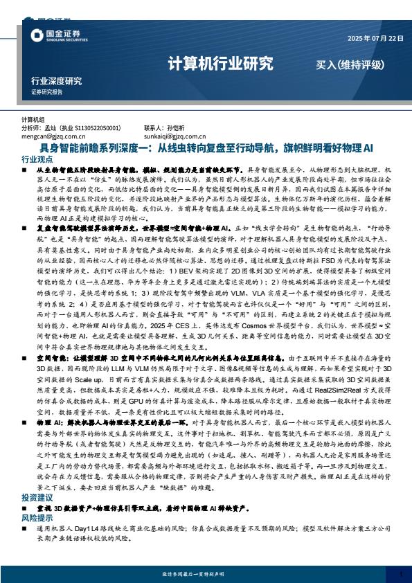 【18747】【国金证券】计算机行业具身智能前瞻系列深度一:从线虫转向复盘至行动导航,旗帜鲜明看好物理AI 16小时前 7月 1 预览结束,本文件为PDF文档,一共26页,请购买后,下载查看 资源下载下载价格59 H币VIP免费升级VIP立即购买下载或充值问题请将订单号发送到:2907878669@qq.com ,我们会在24小时内为您处理 科技电子