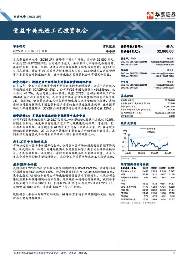 【18595】【华泰证券】半导体行业:东京电子(8035.JP),受益中美先进工艺投资机会 1天前 7月 1 预览结束,本文件为PDF文档,一共35页,请购买后,下载查看 资源下载下载价格59 H币VIP免费升级VIP立即购买下载或充值问题请将订单号发送到:2907878669@qq.com ,我们会在24小时内为您处理 科技电子