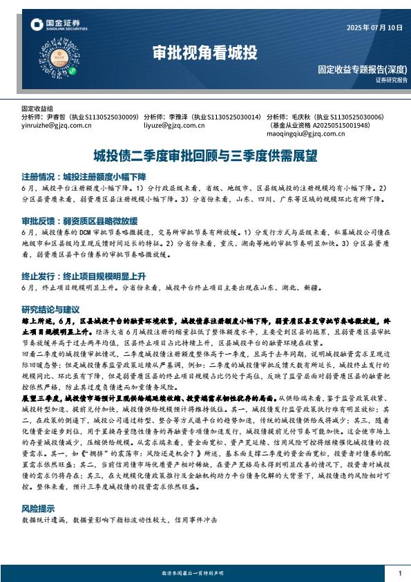【18740】【国金证券】审批视角看城投:城投债二季度审批回顾与三季度供需展望 1天前 7月 1 预览结束,本文件为PDF文档,一共12页,请购买后,下载查看 资源下载下载价格59 H币VIP免费升级VIP立即购买下载或充值问题请将订单号发送到:2907878669@qq.com ,我们会在24小时内为您处理 金融分析