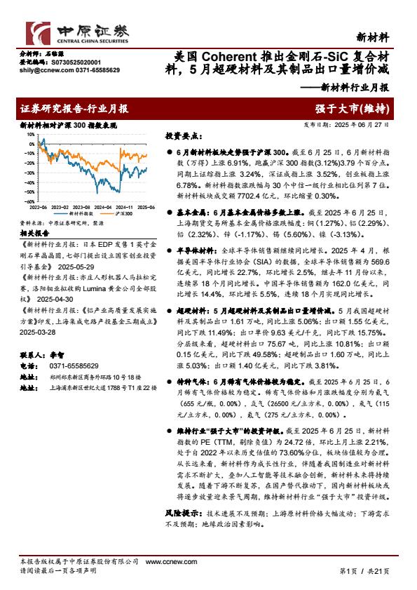 【18202】【中原证券】新材料行业月报:美国Coherent推出金刚石 16小时前 7月 1 预览结束,本文件为PDF文档,一共21页,请购买后,下载查看 资源下载下载价格59 H币VIP免费升级VIP立即购买下载或充值问题请将订单号发送到:2907878669@qq.com ,我们会在24小时内为您处理 金融分析