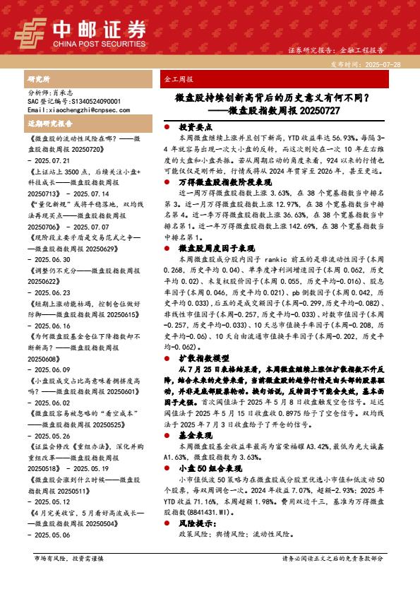 【18213】【中邮证券】微盘股指数周报:微盘股持续创新高背后的历史意义有何不同 16小时前 7月 1 预览结束,本文件为PDF文档,一共30页,请购买后,下载查看 资源下载下载价格59 H币VIP免费升级VIP立即购买下载或充值问题请将订单号发送到:2907878669@qq.com ,我们会在24小时内为您处理 金融分析
