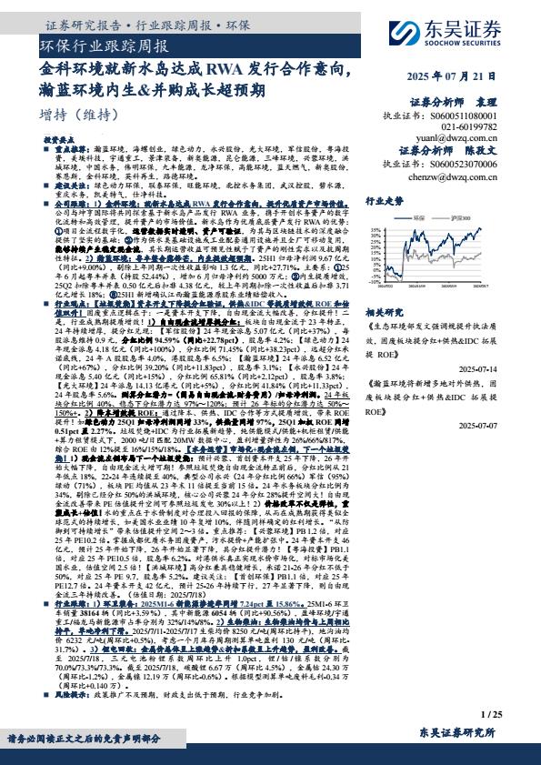 【18831】【东吴证券】环保行业跟踪周报:金科环境就新水岛达成RWA发行合作意向,瀚蓝环境内生、并购成长超预期 16小时前 7月 1 预览结束,本文件为PDF文档,一共25页,请购买后,下载查看 资源下载下载价格59 H币VIP免费升级VIP立即购买下载或充值问题请将订单号发送到:2907878669@qq.com ,我们会在24小时内为您处理 能源化工