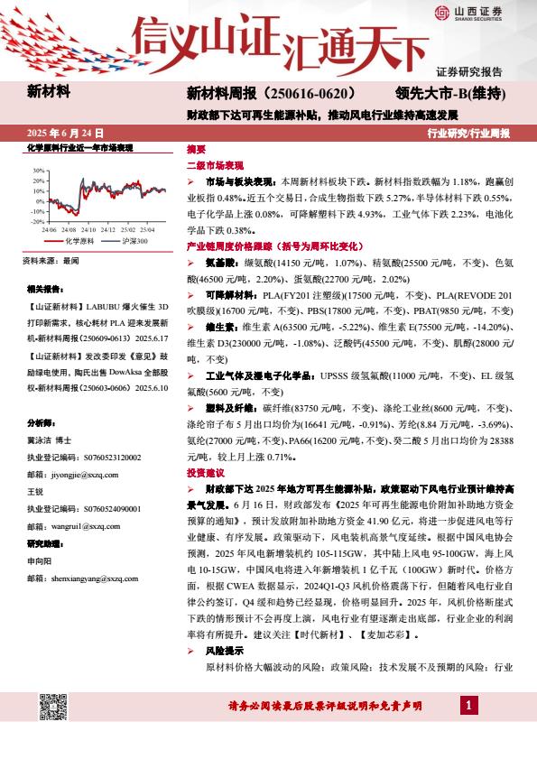 【18484】【山西证券】新材料行业周报:财政部下达可再生能源补贴,推动风电行业维持高速发展 1天前 7月 1 预览结束,本文件为PDF文档,一共23页,请购买后,下载查看 资源下载下载价格59 H币VIP免费升级VIP立即购买下载或充值问题请将订单号发送到:2907878669@qq.com ,我们会在24小时内为您处理 能源化工