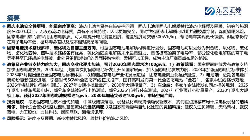 【18833】【东吴证券】固态电池行业:固态电池渐行渐近、新技术及工艺持续涌现 1天前 7月 1 预览结束,本文件为PDF文档,一共25页,请购买后,下载查看 资源下载下载价格59 H币VIP免费升级VIP立即购买下载或充值问题请将订单号发送到:2907878669@qq.com ,我们会在24小时内为您处理 能源化工