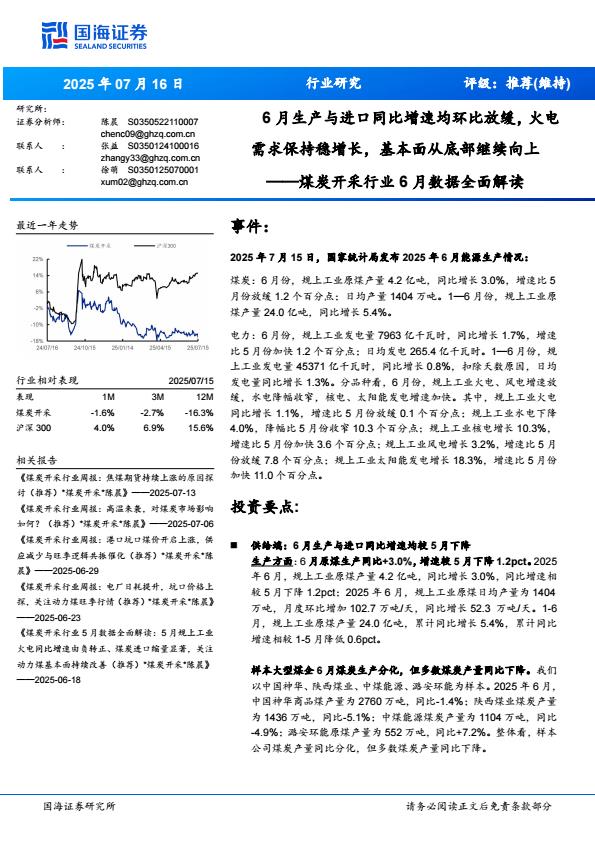 【18775】【国海证券】煤炭开采行业6月数据全面解读:6月生产与进口同比增速均环比放缓,火电需求保持稳增长,基本面从底部继续向上 2天前 7月 3 预览结束,本文件为PDF文档,一共19页,请购买后,下载查看 资源下载下载价格59 H币VIP免费升级VIP立即购买下载或充值问题请将订单号发送到:2907878669@qq.com ,我们会在24小时内为您处理 科技电子