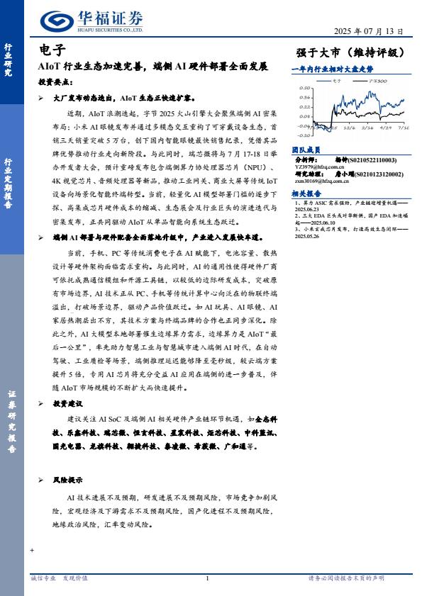 【18617】【华福证券】电子行业定期报告:AIoT行业生态加速完善,端侧AI硬件部署全面发展 2天前 7月 3 预览结束,本文件为PDF文档,一共17页,请购买后,下载查看 资源下载下载价格59 H币VIP免费升级VIP立即购买下载或充值问题请将订单号发送到:2907878669@qq.com ,我们会在24小时内为您处理 科技电子