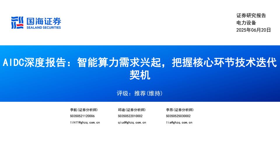 【18780】【国海证券】电力设备行业AIDC深度报告:智能算力需求兴起,把握核心环节技术迭代契机 2天前 7月 2 预览结束,本文件为PDF文档,一共85页,请购买后,下载查看 资源下载下载价格59 H币VIP免费升级VIP立即购买下载或充值问题请将订单号发送到:2907878669@qq.com ,我们会在24小时内为您处理 科技电子