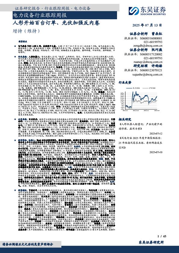 【18845】【东吴证券】电力设备行业跟踪周报:人形开始百台订单、光伏加强反内卷 20小时前 7月 1 预览结束,本文件为PDF文档,一共45页,请购买后,下载查看 资源下载下载价格59 H币VIP免费升级VIP立即购买下载或充值问题请将订单号发送到:2907878669@qq.com ,我们会在24小时内为您处理 能源化工