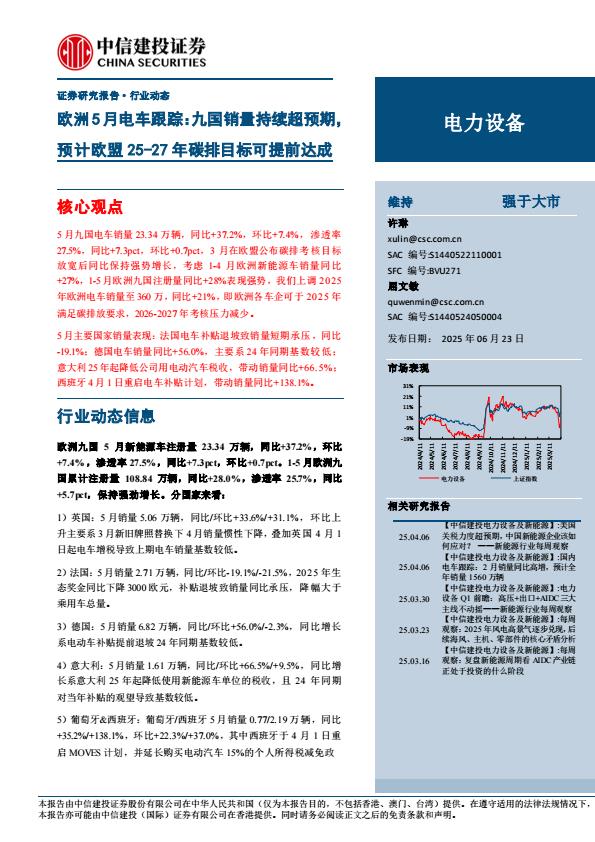 【18329】【中信建投】电力设备行业欧洲5月电车跟踪:九国销量持续超预期,预计欧盟25 1天前 7月 2 预览结束,本文件为PDF文档,一共28页,请购买后,下载查看 资源下载下载价格59 H币VIP免费升级VIP立即购买下载或充值问题请将订单号发送到:2907878669@qq.com ,我们会在24小时内为您处理 汽车物流