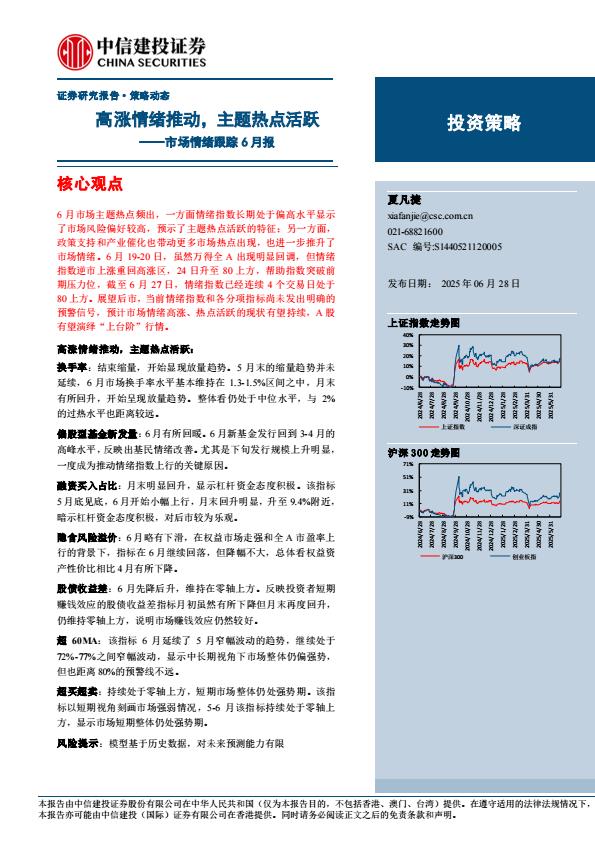 【18248】【中信建投】市场情绪跟踪6月报:高涨情绪推动,主题热点活跃 1天前 7月 1 预览结束,本文件为PDF文档,一共10页,请购买后,下载查看 资源下载下载价格59 H币VIP免费升级VIP立即购买下载或充值问题请将订单号发送到:2907878669@qq.com ,我们会在24小时内为您处理 金融分析