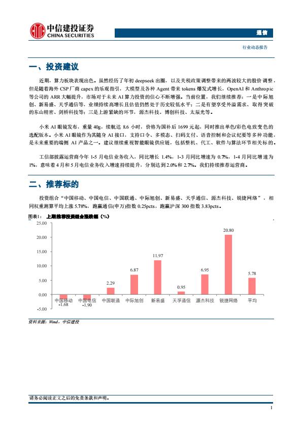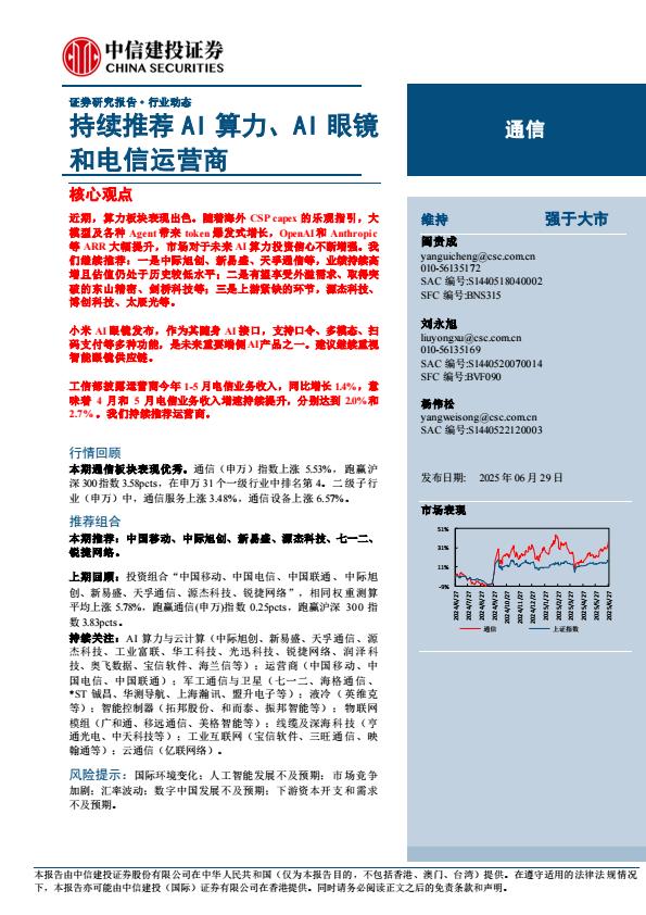 【18240】【中信建投】通信行业动态:持续推荐AI算力、AI眼镜和电信运营商 1天前 7月 1 预览结束,本文件为PDF文档,一共10页,请购买后,下载查看 资源下载下载价格59 H币VIP免费升级VIP立即购买下载或充值问题请将订单号发送到:2907878669@qq.com ,我们会在24小时内为您处理 科技电子