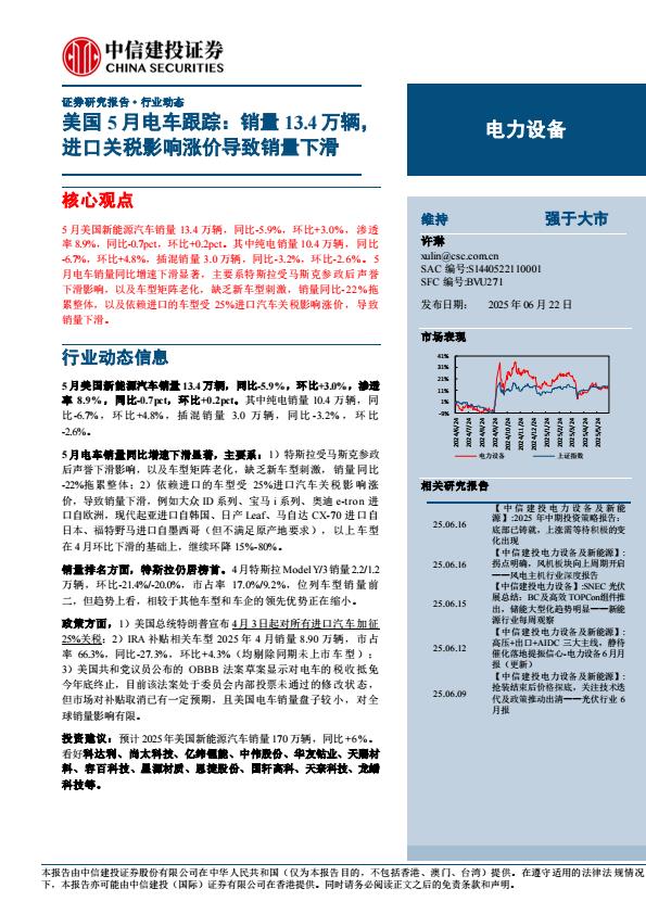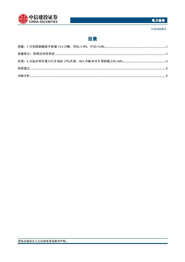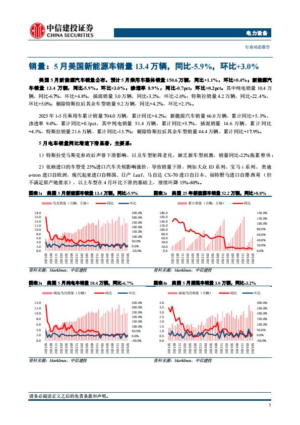 【18331】【中信建投】电力设备行业美国5月电车跟踪:销量13.4万辆,进口关税影响涨价导致销量下滑 1天前 7月 1 预览结束,本文件为PDF文档,一共12页,请购买后,下载查看 资源下载下载价格59 H币VIP免费升级VIP立即购买下载或充值问题请将订单号发送到:2907878669@qq.com ,我们会在24小时内为您处理 汽车物流