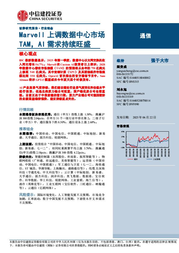 【18241】【中信建投】通信行业动态:Marvell上调数据中心市场TAM,AI需求持续旺盛 1天前 7月 1 预览结束,本文件为PDF文档,一共10页,请购买后,下载查看 资源下载下载价格59 H币VIP免费升级VIP立即购买下载或充值问题请将订单号发送到:2907878669@qq.com ,我们会在24小时内为您处理 科技电子