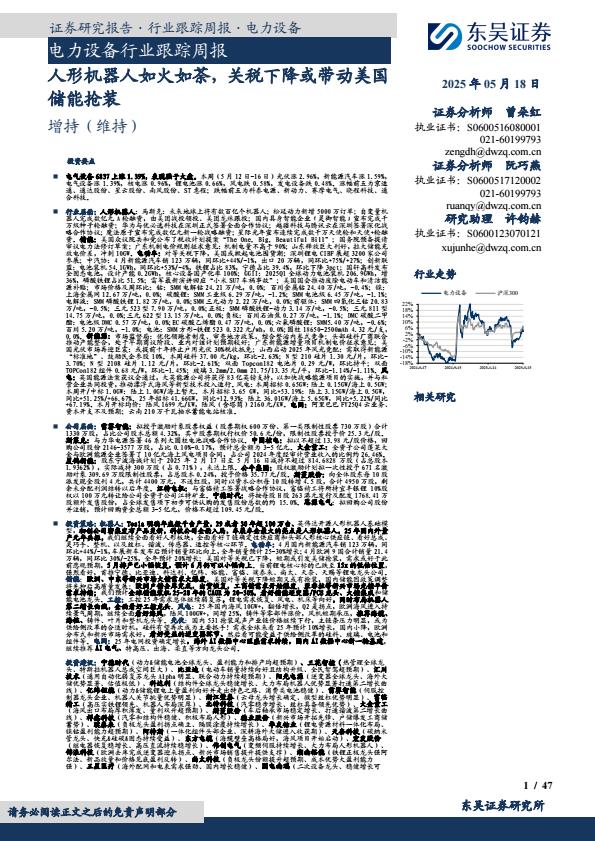 【18846】【东吴证券】电力设备行业跟踪周报:人形机器人如火如荼,关税下降或带动美国储能抢装 1天前 7月 1 预览结束,本文件为PDF文档,一共47页,请购买后,下载查看 资源下载下载价格59 H币VIP免费升级VIP立即购买下载或充值问题请将订单号发送到:2907878669@qq.com ,我们会在24小时内为您处理 科技电子