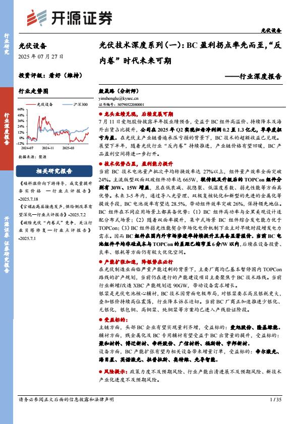 【18531】【开源证券】光伏技术深度系列(一):BC盈利拐点率先而至,“反内卷”时代未来可期 11小时前 7月 2 预览结束,本文件为PDF文档,一共35页,请购买后,下载查看 资源下载下载价格59 H币VIP免费升级VIP立即购买下载或充值问题请将订单号发送到:2907878669@qq.com ,我们会在24小时内为您处理 能源化工