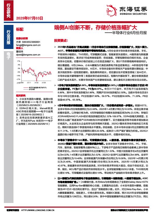 【18866】【东海证券】半导体行业6月份月报:端侧AI创新不断,存储价格涨幅扩大 12小时前 7月 1 预览结束,本文件为PDF文档,一共28页,请购买后,下载查看 资源下载下载价格59 H币VIP免费升级VIP立即购买下载或充值问题请将订单号发送到:2907878669@qq.com ,我们会在24小时内为您处理 科技电子