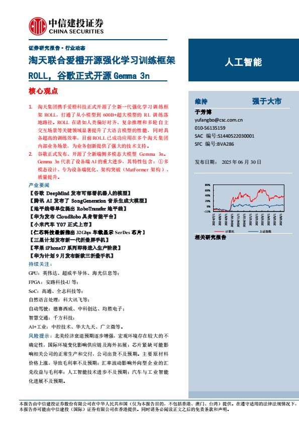 【18256】【中信建投】人工智能行业动态:淘天联合爱橙开源强化学习训练框架ROLL,谷歌正式开源Gemma+3n 12小时前 7月 1 预览结束,本文件为PDF文档,一共17页,请购买后,下载查看 资源下载下载价格59 H币VIP免费升级VIP立即购买下载或充值问题请将订单号发送到:2907878669@qq.com ,我们会在24小时内为您处理 科技电子