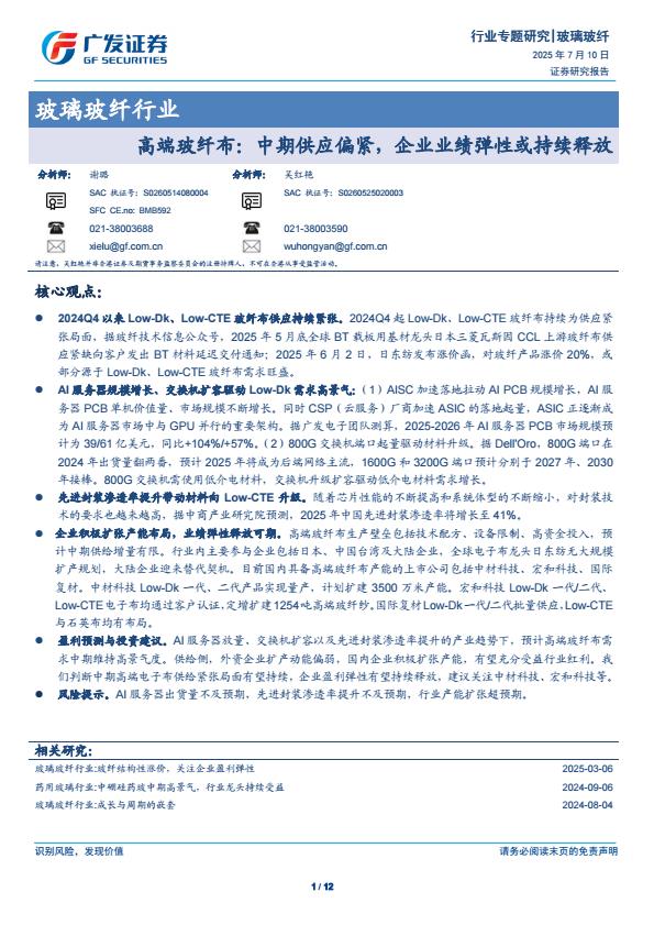 【18795】【广发证券】玻璃玻纤行业:高端玻纤布,中期供应偏紧,企业业绩弹性或持续释放 12小时前 7月 1 预览结束,本文件为PDF文档,一共12页,请购买后,下载查看 资源下载下载价格59 H币VIP免费升级VIP立即购买下载或充值问题请将订单号发送到:2907878669@qq.com ,我们会在24小时内为您处理 金融分析