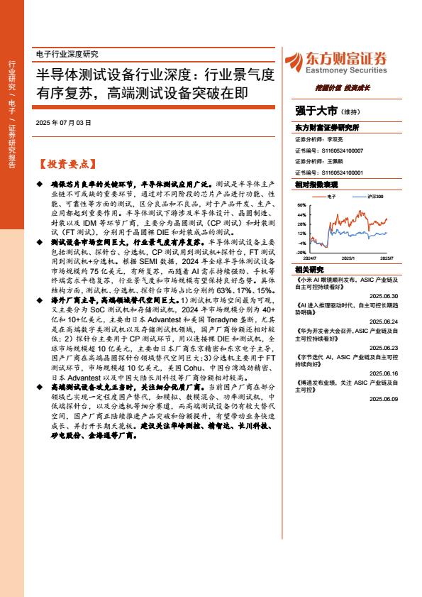 【18872】【东方财富证券】半导体测试设备行业深度:行业景气度有序复苏,高端测试设备突破在即 12小时前 7月 1 预览结束,本文件为PDF文档,一共35页,请购买后,下载查看 资源下载下载价格59 H币VIP免费升级VIP立即购买下载或充值问题请将订单号发送到:2907878669@qq.com ,我们会在24小时内为您处理 科技电子