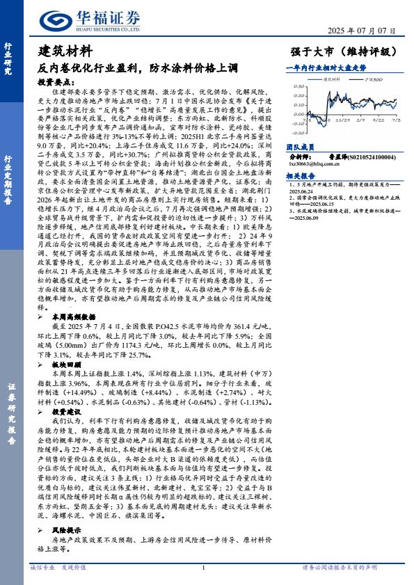 【18612】【华福证券】建筑材料行业定期报告:反内卷优化行业盈利,防水涂料价格上调 8小时前 7月 1 预览结束,本文件为PDF文档,一共11页,请购买后,下载查看 资源下载下载价格59 H币VIP免费升级VIP立即购买下载或充值问题请将订单号发送到:2907878669@qq.com ,我们会在24小时内为您处理 地产开发