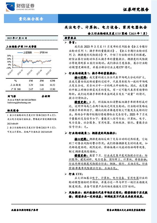 【18876】【财信证券】金工行业轮动及月度ETF策略(2025年7月):关注电子、计算机、电力设备、家用电器机会 12小时前 7月 1 预览结束,本文件为PDF文档,一共10页,请购买后,下载查看 资源下载下载价格59 H币VIP免费升级VIP立即购买下载或充值问题请将订单号发送到:2907878669@qq.com ,我们会在24小时内为您处理 科技电子