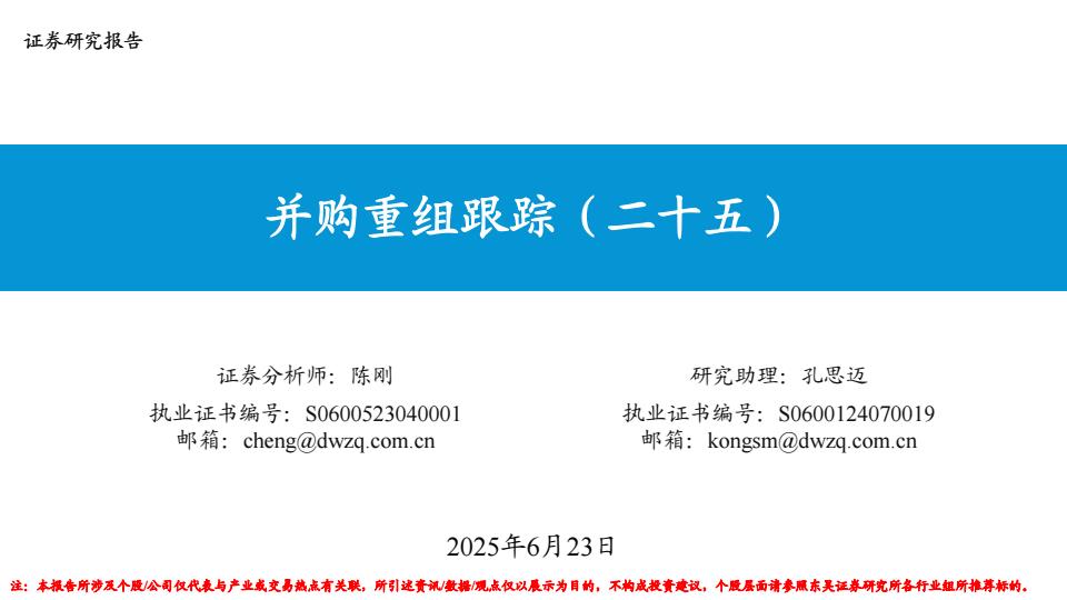 【18858】【东吴证券】并购重组跟踪(二十五) 12小时前 7月 1 预览结束,本文件为PDF文档,一共13页,请购买后,下载查看 资源下载下载价格59 H币VIP免费升级VIP立即购买下载或充值问题请将订单号发送到:2907878669@qq.com ,我们会在24小时内为您处理 金融分析