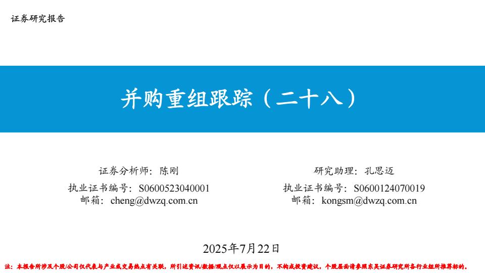 【18860】【东吴证券】并购重组跟踪(二十八) 1天前 7月 1 预览结束,本文件为PDF文档,一共13页,请购买后,下载查看 资源下载下载价格59 H币VIP免费升级VIP立即购买下载或充值问题请将订单号发送到:2907878669@qq.com ,我们会在24小时内为您处理 金融分析