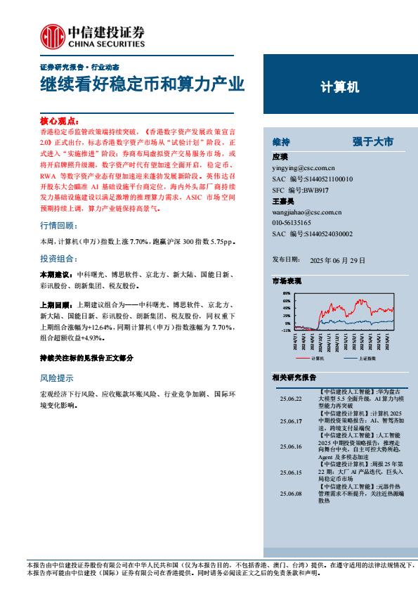 【18278】【中信建投】计算机行业:继续看好稳定币和算力产业 12小时前 7月 1 预览结束,本文件为PDF文档,一共11页,请购买后,下载查看 资源下载下载价格59 H币VIP免费升级VIP立即购买下载或充值问题请将订单号发送到:2907878669@qq.com ,我们会在24小时内为您处理 科技电子