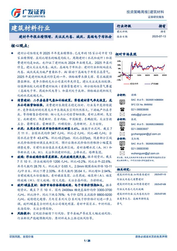 【18787】【广发证券】建筑材料行业:建材半年报业绩预增,关注反内卷、城改、高端电子布机会 8小时前 7月 1 预览结束,本文件为PDF文档,一共26页,请购买后,下载查看 资源下载下载价格59 H币VIP免费升级VIP立即购买下载或充值问题请将订单号发送到:2907878669@qq.com ,我们会在24小时内为您处理 地产开发