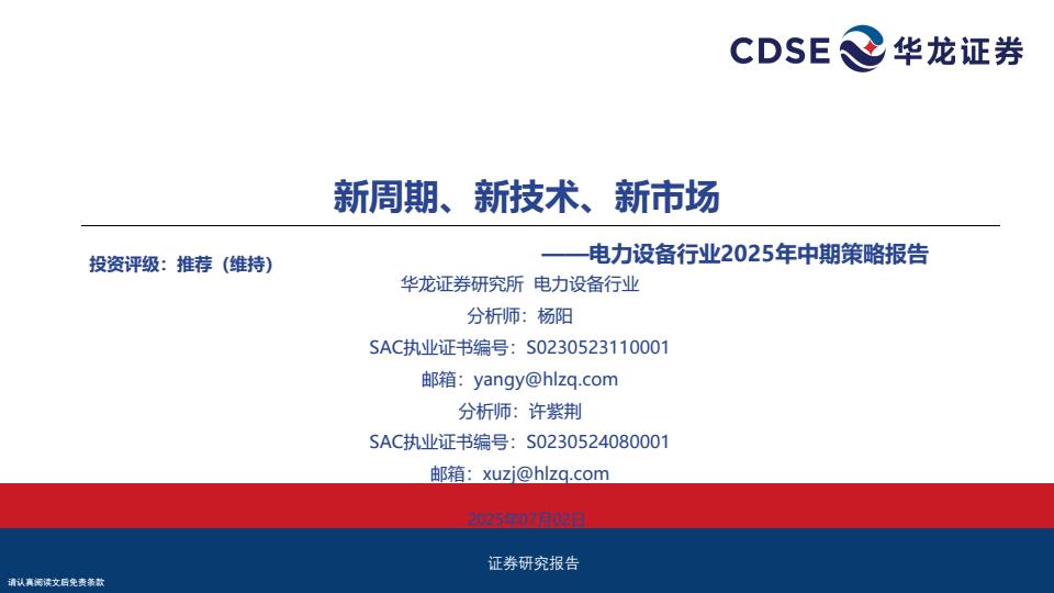 【18600】【华龙证券】电力设备行业2025年中期策略报告:新周期、新技术、新市场 16小时前 7月 1 预览结束,本文件为PDF文档,一共31页,请购买后,下载查看 资源下载下载价格59 H币VIP免费升级VIP立即购买下载或充值问题请将订单号发送到:2907878669@qq.com ,我们会在24小时内为您处理 能源化工