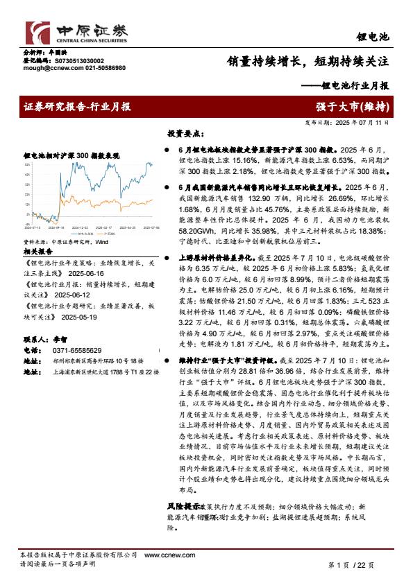 【18204】【中原证券】锂电池行业月报:销量持续增长,短期持续关注 16小时前 7月 1 预览结束,本文件为PDF文档,一共22页,请购买后,下载查看 资源下载下载价格59 H币VIP免费升级VIP立即购买下载或充值问题请将订单号发送到:2907878669@qq.com ,我们会在24小时内为您处理 能源化工