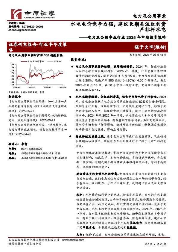 【18208】【中原证券】电力及公用事业行业2025年中期投资策略:水电电价竞争力强,建议长期关注红利资产标杆水电 16小时前 7月 2 预览结束,本文件为PDF文档,一共23页,请购买后,下载查看 资源下载下载价格59 H币VIP免费升级VIP立即购买下载或充值问题请将订单号发送到:2907878669@qq.com ,我们会在24小时内为您处理 能源化工
