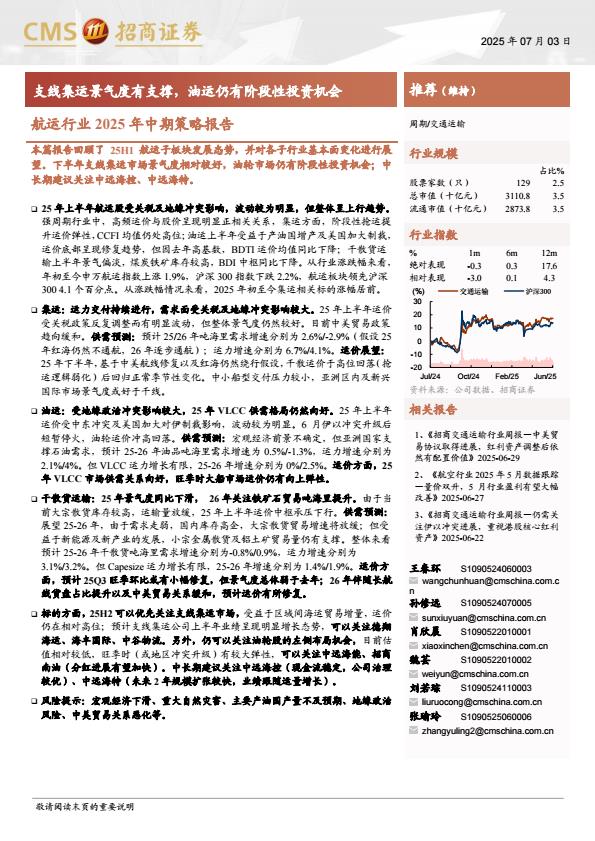 【18385】【招商证券】航运行业2025年中期策略报告:支线集运景气度有支撑,油运仍有阶段性投资机会 22小时前 7月 1 预览结束,本文件为PDF文档,一共23页,请购买后,下载查看 资源下载下载价格59 H币VIP免费升级VIP立即购买下载或充值问题请将订单号发送到:2907878669@qq.com ,我们会在24小时内为您处理 汽车物流