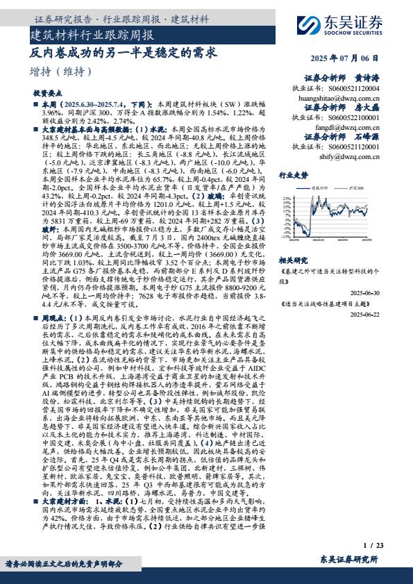 【18829】【东吴证券】建筑材料行业跟踪周报:反内卷成功的另一半是稳定的需求 16小时前 7月 2 预览结束,本文件为PDF文档,一共23页,请购买后,下载查看 资源下载下载价格59 H币VIP免费升级VIP立即购买下载或充值问题请将订单号发送到:2907878669@qq.com ,我们会在24小时内为您处理 地产开发