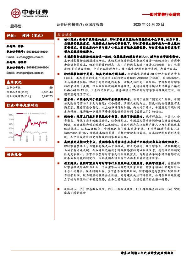 【18356】【中泰证券】即时零售行业研究:履约形态适配中国土壤,即时零售潜力或超预期 15小时前 7月 2 预览结束,本文件为PDF文档,一共24页,请购买后,下载查看 资源下载下载价格59 H币VIP免费升级VIP立即购买下载或充值问题请将订单号发送到:2907878669@qq.com ,我们会在24小时内为您处理 消费零售