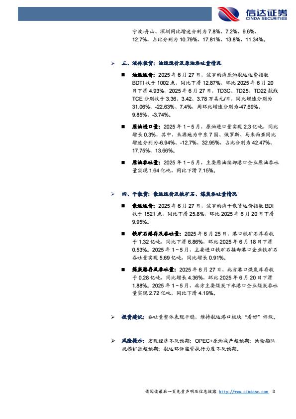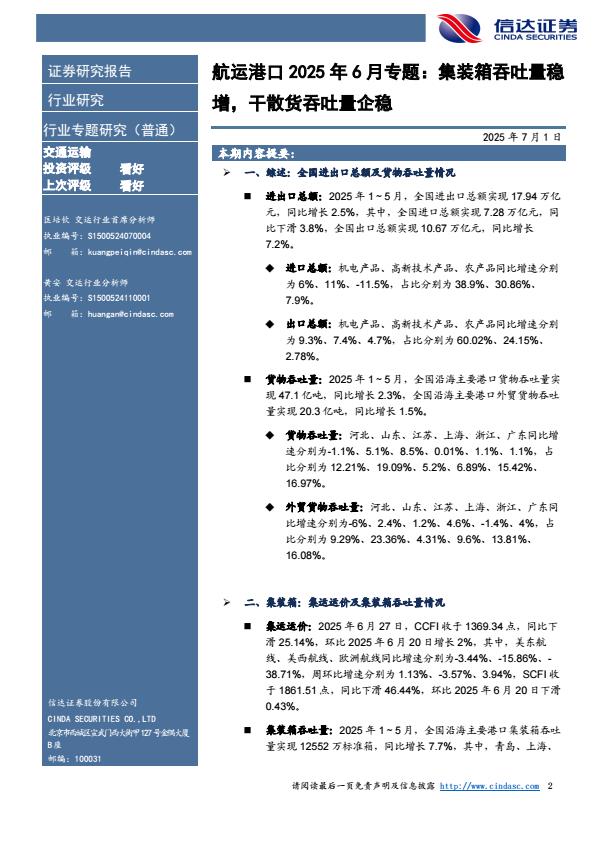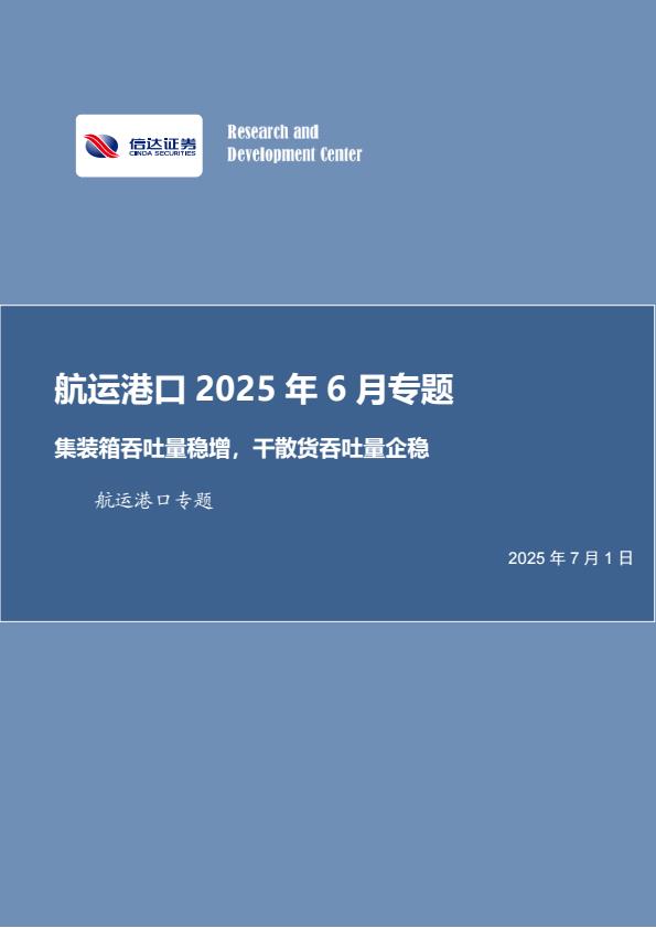 【18421】【信达证券】航运港口行业2025年6月专题:集装箱吞吐量稳增,干散货吞吐量企稳 16小时前 7月 1 预览结束,本文件为PDF文档,一共25页,请购买后,下载查看 资源下载下载价格59 H币VIP免费升级VIP立即购买下载或充值问题请将订单号发送到:2907878669@qq.com ,我们会在24小时内为您处理 汽车物流