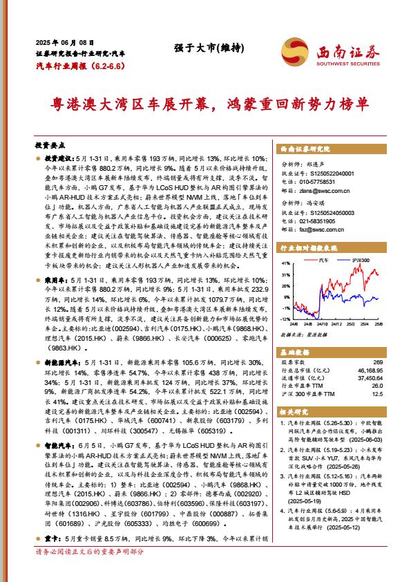 【18433】【西南证券】汽车行业周报:粤港澳大湾区车展开幕,鸿蒙重回新势力榜单 16小时前 7月 1 预览结束,本文件为PDF文档,一共22页,请购买后,下载查看 资源下载下载价格59 H币VIP免费升级VIP立即购买下载或充值问题请将订单号发送到:2907878669@qq.com ,我们会在24小时内为您处理 汽车物流