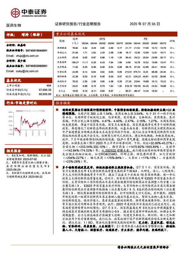 【18348】【中泰证券】医药生物行业:Q2业绩前瞻;创新药械政策频出 16小时前 7月 2 预览结束,本文件为PDF文档,一共13页,请购买后,下载查看 资源下载下载价格59 H币VIP免费升级VIP立即购买下载或充值问题请将订单号发送到:2907878669@qq.com ,我们会在24小时内为您处理 科技电子