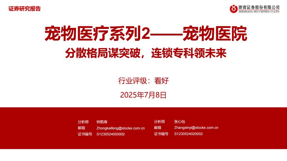 【18373】【浙商证券】宠物医疗系列2——宠物医院:分散格局谋突破,连锁专科领未来 15小时前 7月 2 预览结束,本文件为PDF文档,一共20页,请购买后,下载查看 资源下载下载价格59 H币VIP免费升级VIP立即购买下载或充值问题请将订单号发送到:2907878669@qq.com ,我们会在24小时内为您处理 消费零售