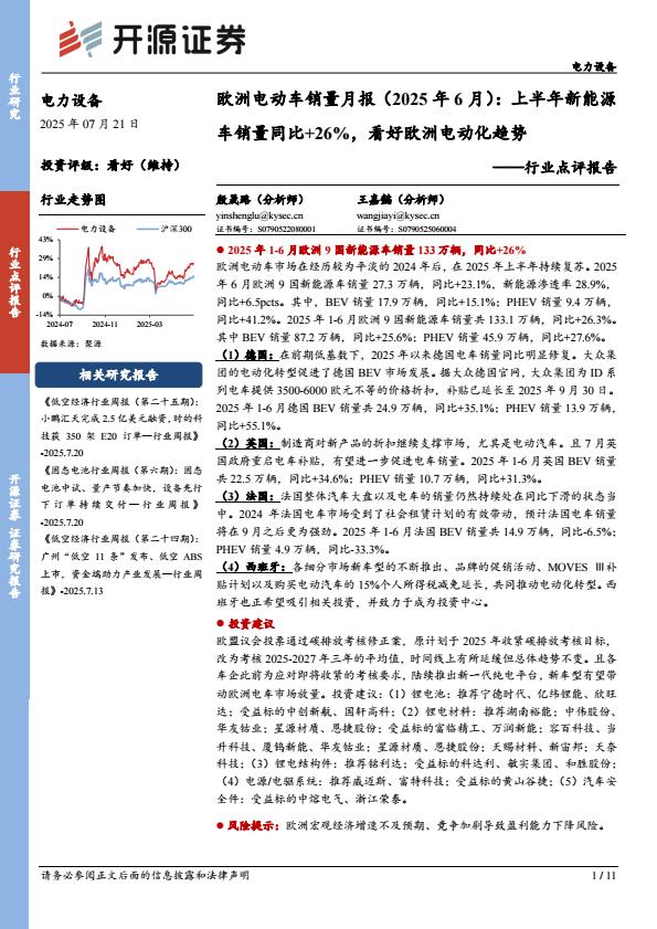 【18535】【开源证券】电力设备行业欧洲电动车销量月报(2025年6月):上半年新能源车销量同比+26%,看好欧洲电动化趋势 12小时前 7月 1 预览结束,本文件为PDF文档,一共11页,请购买后,下载查看 资源下载下载价格59 H币VIP免费升级VIP立即购买下载或充值问题请将订单号发送到:2907878669@qq.com ,我们会在24小时内为您处理 汽车物流