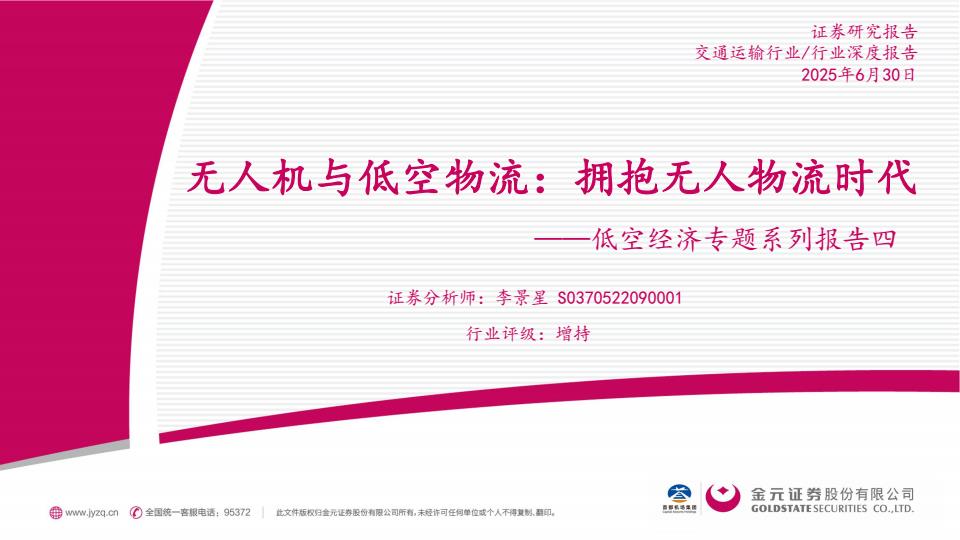【18545】【金元证券】低空经济专题系列报告四:无人机与低空物流:拥抱无人物流时代 12小时前 7月 1 预览结束,本文件为PDF文档,一共35页,请购买后,下载查看 资源下载下载价格59 H币VIP免费升级VIP立即购买下载或充值问题请将订单号发送到:2907878669@qq.com ,我们会在24小时内为您处理 汽车物流