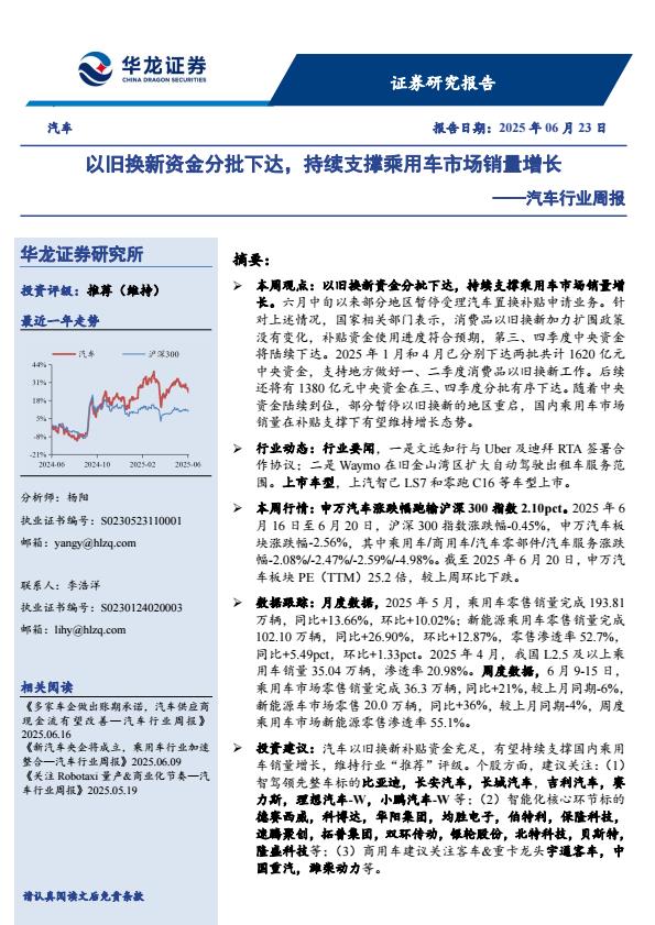 【18596】【华龙证券】汽车行业周报:以旧换新资金分批下达,持续支撑乘用车市场销量增长 12小时前 7月 1 预览结束,本文件为PDF文档,一共21页,请购买后,下载查看 资源下载下载价格59 H币VIP免费升级VIP立即购买下载或充值问题请将订单号发送到:2907878669@qq.com ,我们会在24小时内为您处理 汽车物流